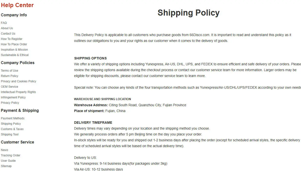 It is equally crucial to have a quick turnaround time. The inventory that is sold out results in lost revenue, so it is crucial to replenish your stock quickly. 66Disco boasts fast fulfillment and claims that "fast shipping helps you stock up easily" This means that you can replenish the top-selling jeans without lengthy delays. They even have US-based stock to speed up delivery. Retailers should speak with prospective suppliers about delivery times and lead times (some offer express shipping with a cost while others offer freight for large orders). The site 66Disco explicitly outlines the ability to ship from China or from the US warehouse, and offers retailers options based on the urgency and budget.