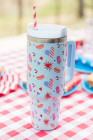 Beau Blue Flag Day Fun Pattern Cup with Handle 40oz