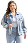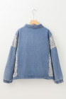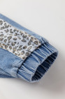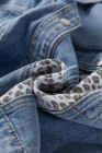 Plus Size Beau Blue Leopard Patchwork Flap Detail Denim Jacket