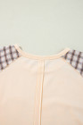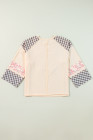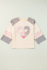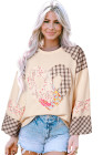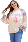 Beige Plaid Floral Peace Heart Graphic Wide Long Sleeve Top