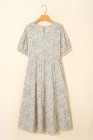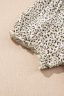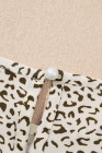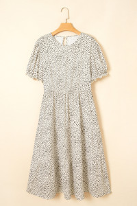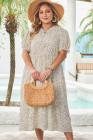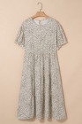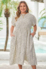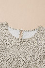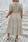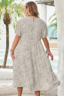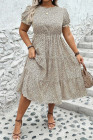 Plus Size Beige Leopard Print Frill Trim Short Sleeve Flared Dress