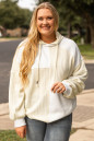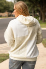Plus Size Beige Textured Patchwork Exposed Seam Hoodie