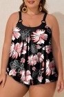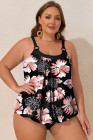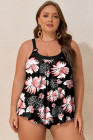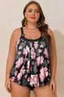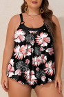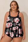 Plus Size Black 2pcs Wide Strap Floral Top Tankini Set