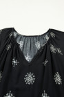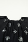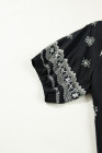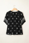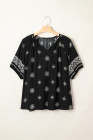 Black Boho Chic Notched V Neck Plus Floral Short Sleeve Top