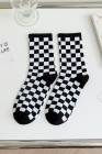 Black Checkerboard Print Cotton Socks