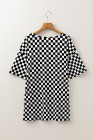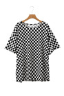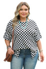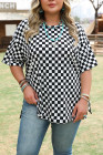 Plus Size Black Checkered Print Side Slits O Neck T Shirt