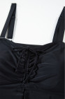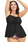 Plus Size Black Drawstring Tied Front Flared Top Geometric Print Bottom Tankinis