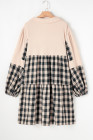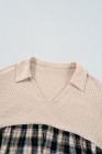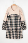 Plus Size Black Plaid Waffle Knit Patchwork Collared V Neck Mini Dress