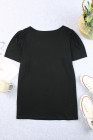 Plus Size Black Square Neck Ruched Shoulder Short Sleeve Top