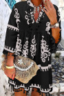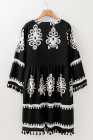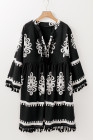 Plus Size Black Western Floral Print Fringed V Neck Dress