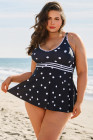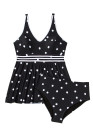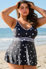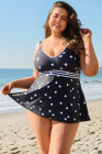 Plus Size Black Polka Dot Trim V Neck Swim Dress