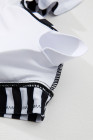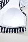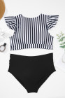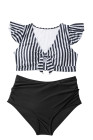 Plus Size Black Stripe Knot Cutout Ruffle Sleeve and High Waisted 2pcs Swimsuit