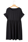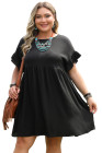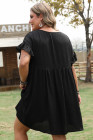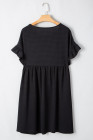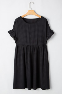 Black Textured Ruffled Sleeve Babydoll Plus Dress