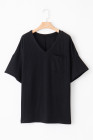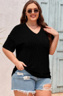 Black Textured V-Neck Dropped Shoulder Plus T-Shirt