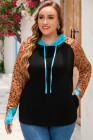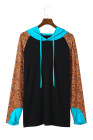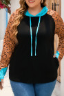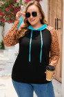 Plus Size Black Western Print Color Block Hoodie