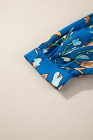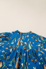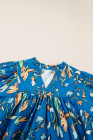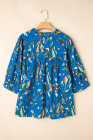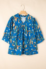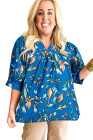 Plus Size Blue Floral Notched V Neck Half Sleeve Blouse
