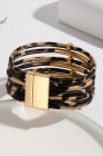 Brown Multi-layer Leopard Beaded Magnet Buckle Bracelet