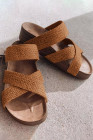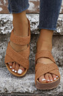 Brown Woven Cross Criss Hollowed Slip-On Slippers