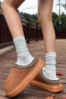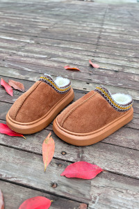 Chestnut Contrast Edge Suede Plush Lined Thick Sole Winter Slippers