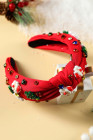 Fiery Red Cartoon Christmas Pattern Rhinestone Knotted Headband