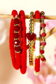 Fiery Red Heart Beaded Multi Layered Elastic Bracelet Set