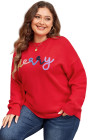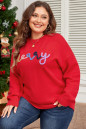 Plus Size Fiery Red Tinsel merry Pattern Drop Shoulder Sweater