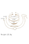 Gold Leaves Retro Pattern Adjustable Plated 5Pcs Bracelet Set