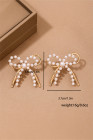 Gold Pearl Embellished Alloy Bow Knot Stud Earrings