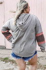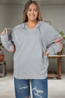 Plus Size Gray Contrast Patched Sleeve Hoodie