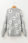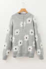 Plus Size Gray Embroidered Floral Pattern Half Zip Sweater