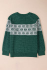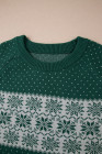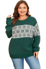 Plus Size Green Christmas Snowflake Pattern Drop Shoulder Sweater