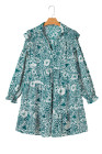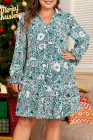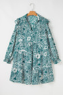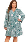 Plus Size Green Floral Flounce Sleeve Split Neck Dress