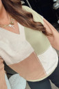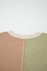 Green Plus Mixed Texture Color Block Patchwork V Neck Long Sleeve Top