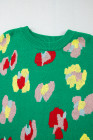 Plus Size Green Floral Knitted Ribbed Edge Drop Shoulder Sweater