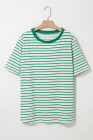 Plus Size Green Stripe St Patricks Day Round Neck T Shirt