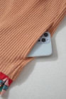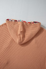 Plus Size Khaki Aztec Patchwork Waffle Knit Hoodie