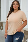 Khaki Casual Plain Crew Neck Tee