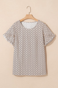 Plus Size Khaki Geometric Print Ruffled Sleeve Blouse