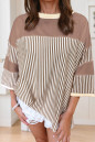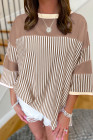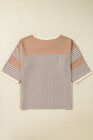 Plus Size Khaki Stripe Patchwork Bracelet Sleeve T Shirt