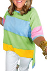 Plus Size Light Blue Color Block Exposed Seam Patchwork T Shirt