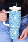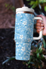 Light Blue Floral Print Stainless Steel Vacuum Cup 40oz
