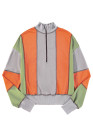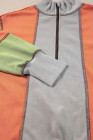 Light Grey Color Block Stitching Detail Half Zipper Sweatshirt