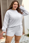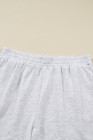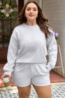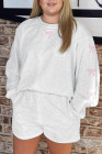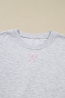 Light Grey Girly Bow Embroidered Puff Sleeve Pullover Loose Shorts Plus 2pcs Outfit