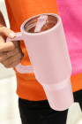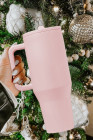 Light Pink Frosted Stainless Handle Large Vacuum Cup with Straw 40oz
