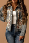 Medium Grey Corduroy Floral Patchwork Vintage Jacket