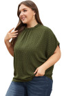 Plus Size Moss Green Swiss Dot Mock Neck Tied Nape Top
