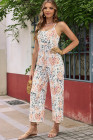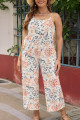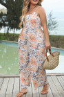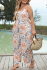 Plus Size Multicolor Floral Spaghetti Straps Wide Leg Jumpsuit