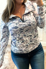 Multicolour Plus Camouflage Print Quarter Zip Kangaroo Pocket Pullover Sweatshirt