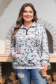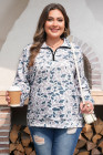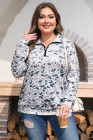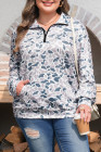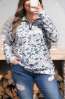 Multicolour Plus Camouflage Print Quarter Zip Kangaroo Pocket Pullover Sweatshirt