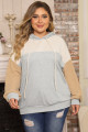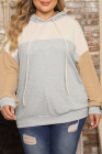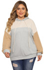 Plus Size Multicolour Colorblock Drop Shoulder Ribbed Knit Hoodie